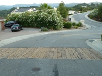 There is another wooden crossing before you reach the bottom of the first steep hill. Cross the street and head up the hill.